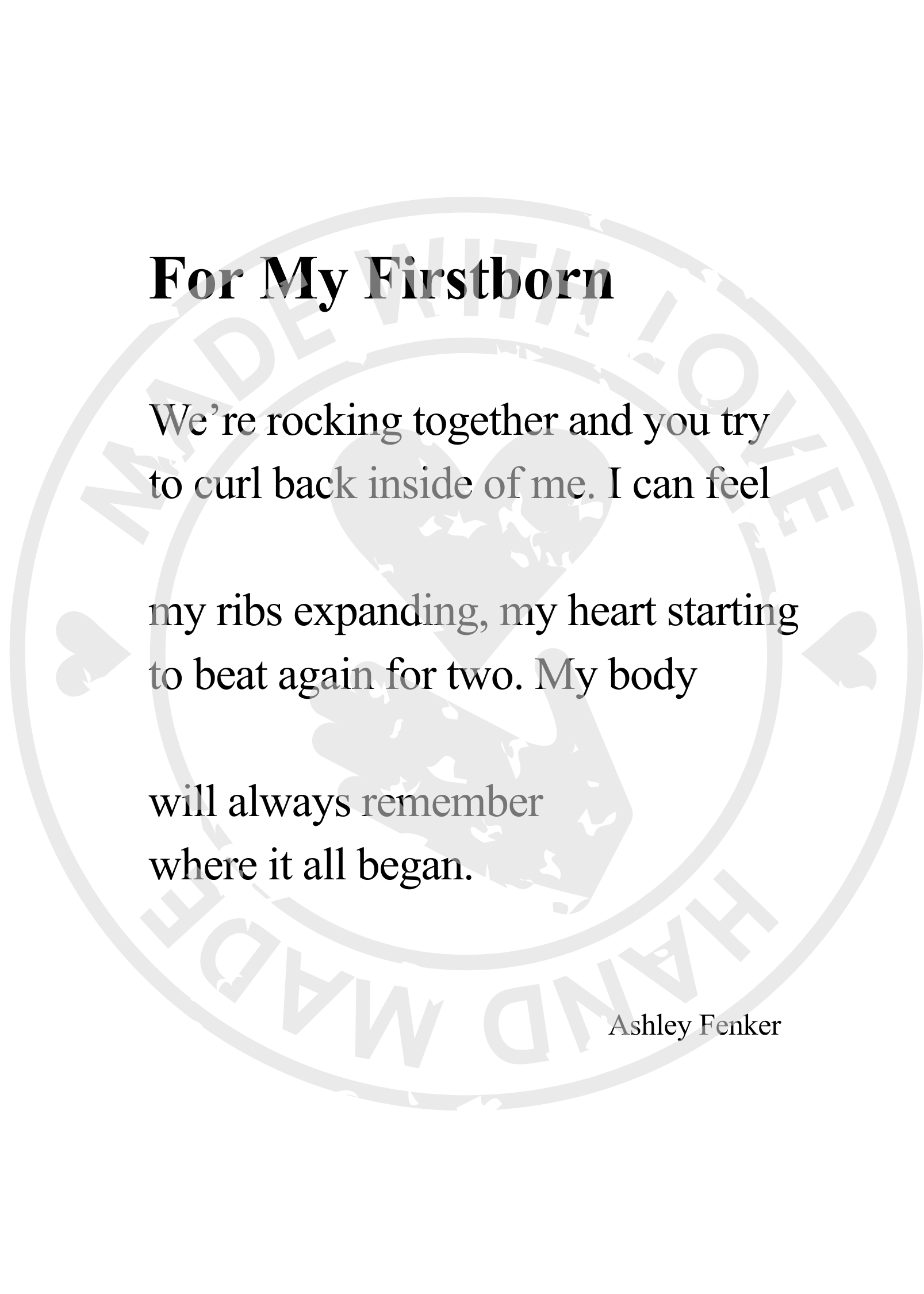 5x7 poetry print of “For My Firstborn” by Ashley Fenker