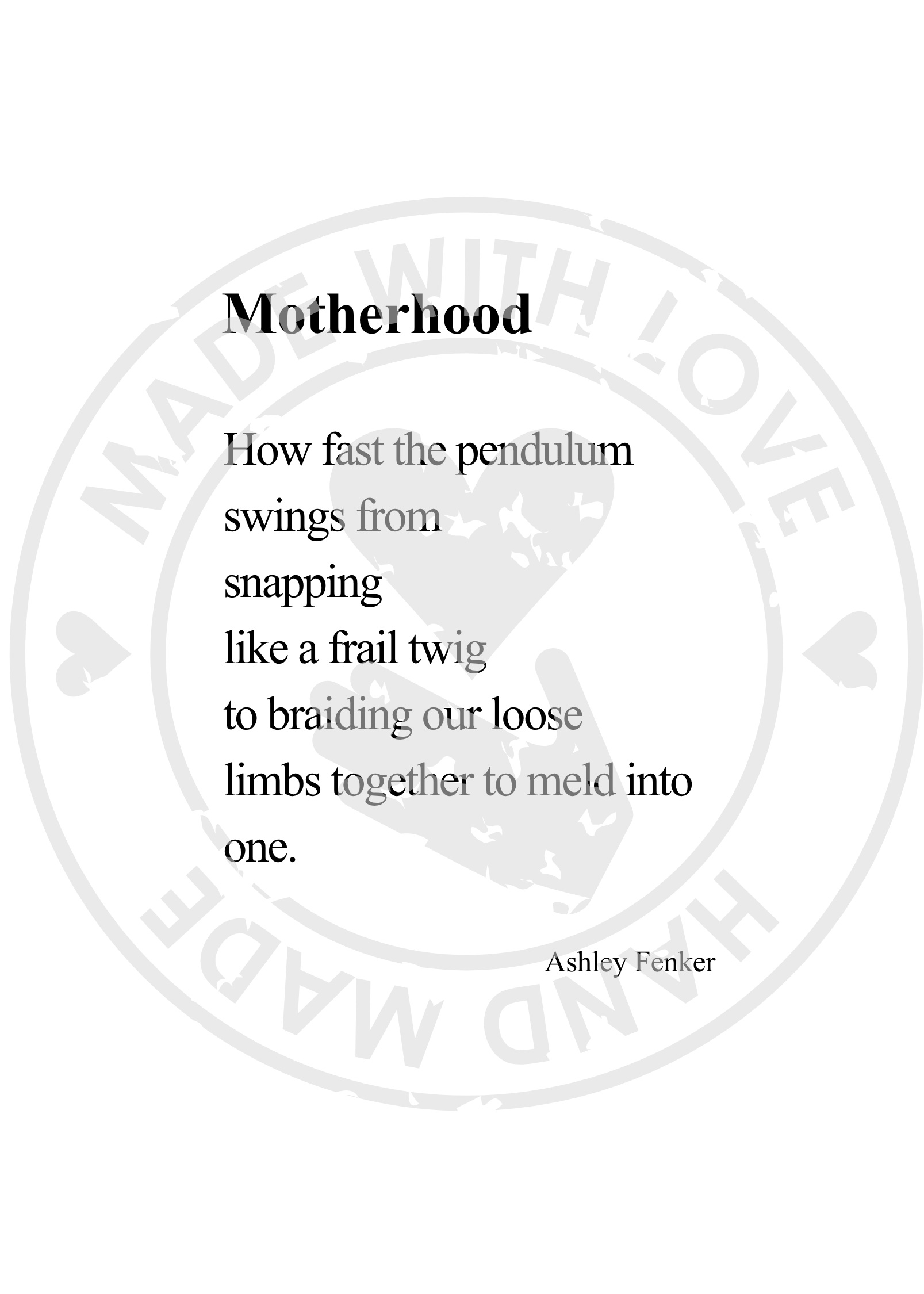 5x7 poetry print of “Motherhood” by Ashley Fenker